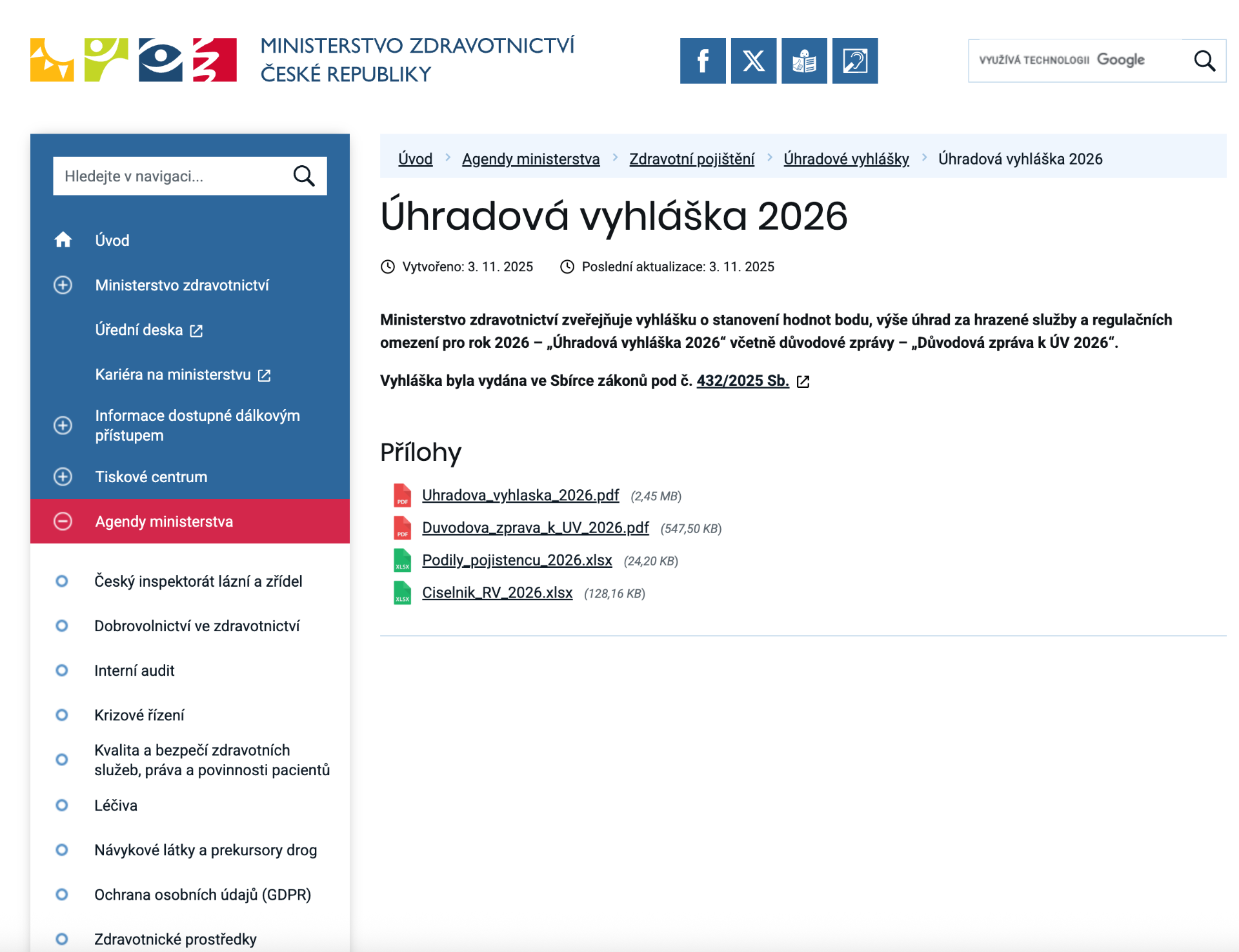 Úhradová vyhláška 2026